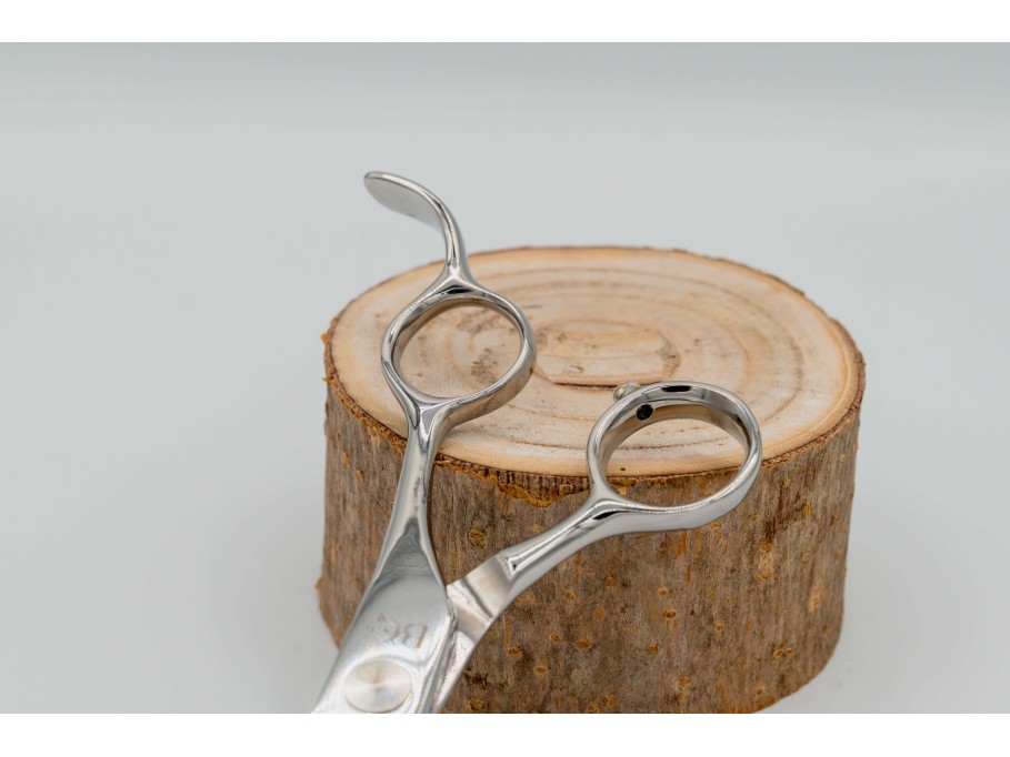Ciseaux de qualité professionnelle disposant d’un repose doigt fixe.